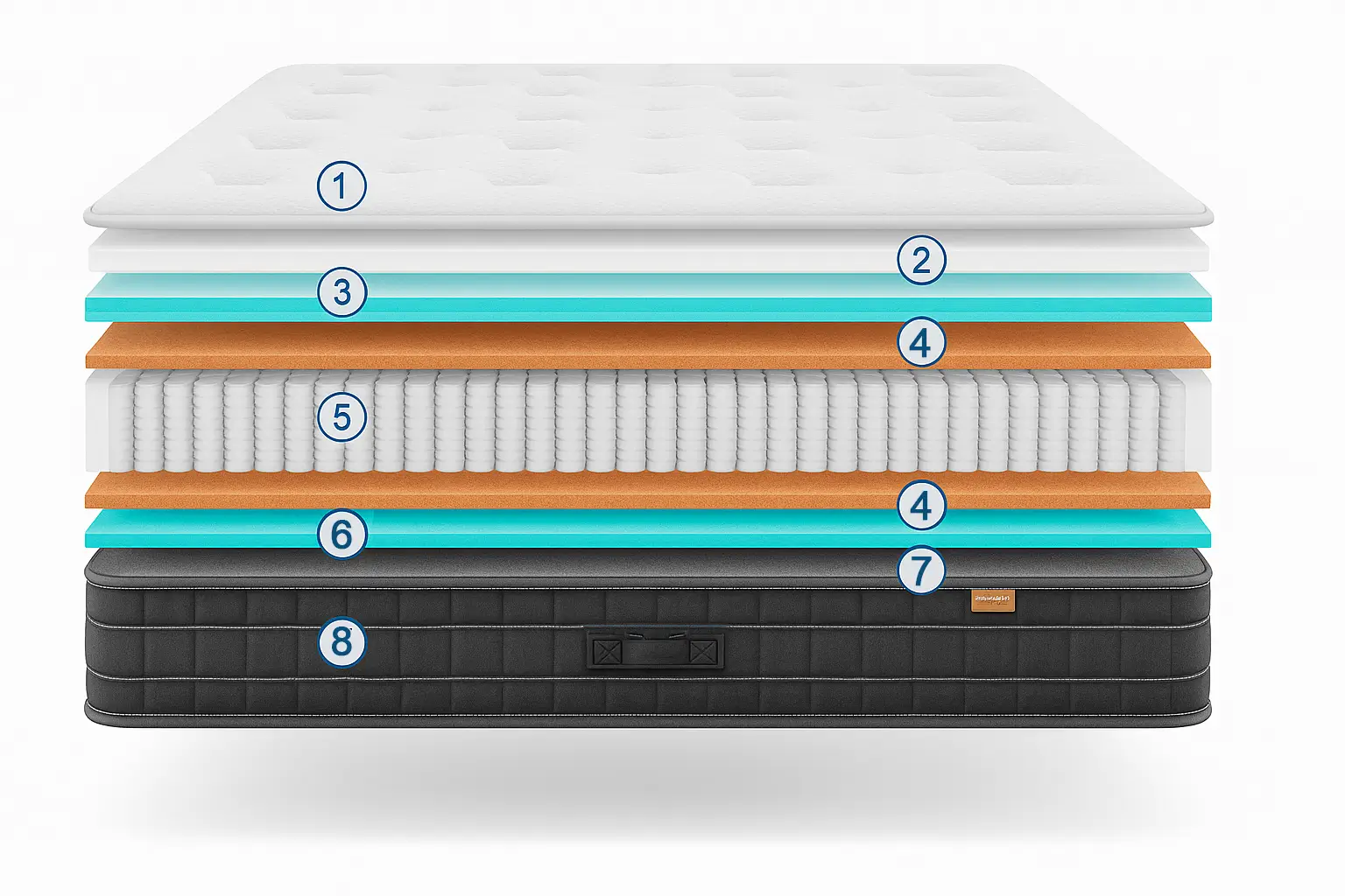 Diseñado en España y disponible en Barcelona, este modelo ofrece un soporte ergonómico y una protección higiénica de última generación, pensado para quienes buscan un descanso saludable, duradero y perfectamente equilibrado.