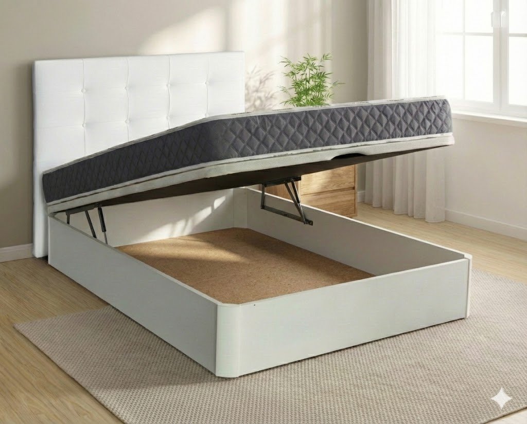 No usamos canapés de «papel». Este modelo monta una estructura de madera de gran espesor y patas de DM macizo. Grancapacidad de carga y, lo más importante, incluye refuerzos longitudinales en las medidas de matrimonio para evitar que la tapa se curve con el uso.